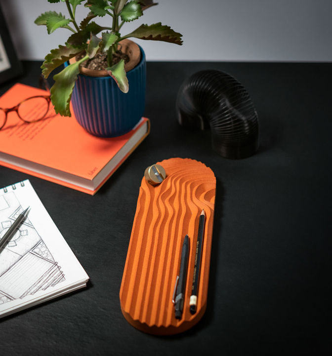 Drawing their forms from organic geographical shapes, these trays are both sculptural and functional. Crafted from Valchomat, a high density material dyed with organic dyes, the contours reveal pockets for your trinkets, office accessories, jewellery, keys, and coins.