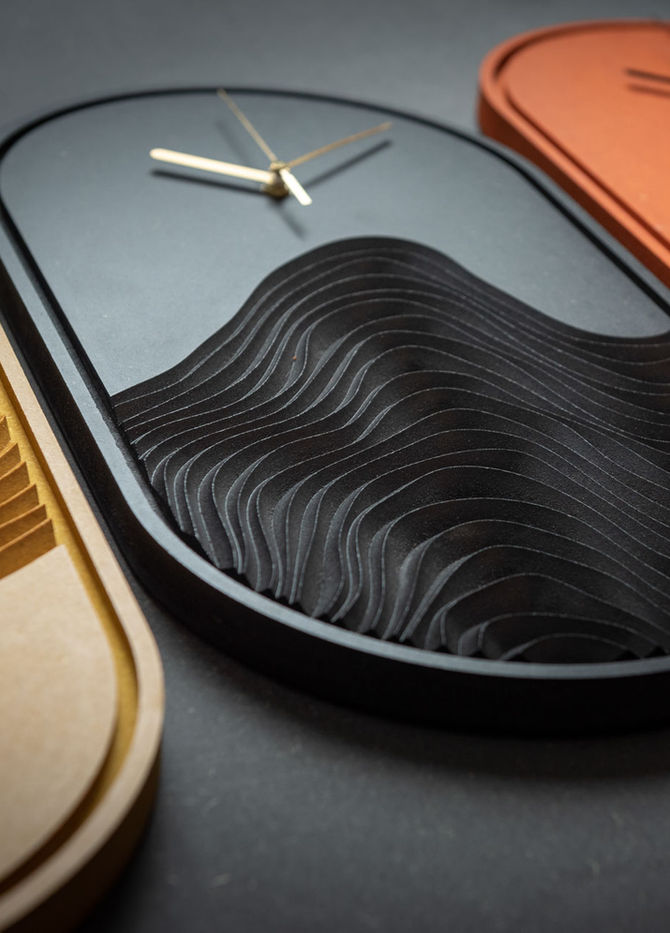 These capsule shaped clocks showcase the geographical contours from several locations significant to AH HA Project’s founders. The clocks have clean lines and sleek forms due to their geometric shape and minimalist look without hour markers. The combination of simplicity and organic natural forms make these clocks a must-have addition to any home.